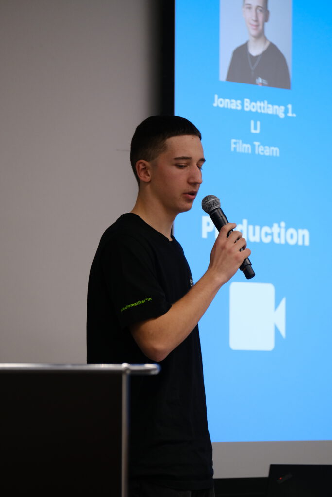 Wir durften jeden Dienstag während des Projektes ins Labor gehen und die Abläufe begleiten. Mit den vielen Interviews und Aufnahmen der beiden Projekte erstellten wir einen ansprechenden Clip von etwa fünf Minuten Länge. Am Ende des Projektes präsentierten wir unser Produkt bei der Vorstellung des Projektes und wurden dafür mit einer Urkunde geehrt. Das Projekt hat mir sehr gefallen, und ich konnte viel über Kameraführung und Lichteinstellungen lernen.